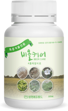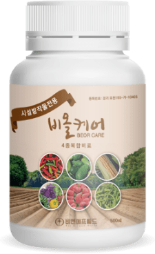 - 작목 파종 전 (최소 30-40일 전) 유기질 퇴비와 함께 비올케어 500ml 1병을 500:1 비유로 희석하여 6시간 지난 후 토양에 살포합니다.