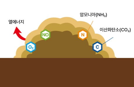 미생물의 분해작용에 의해 이산화탄소와 열에너지 등이 발생하게 됩니다.