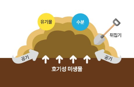 - 퇴비 더미에 함유된 유기물, 산소 등으로 퇴비화의 조건이 갖춰되면