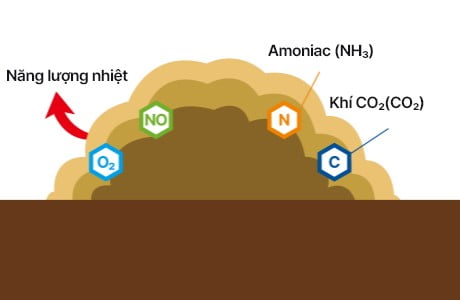 - Khi đống phân có đủ điều kiện như chất hữu cơ và oxy, quá trình ủ phân diễn ra nhờ hoạt động phân giải của vi sinh vật, tạo ra khí CO₂ và năng lượng nhiệt.