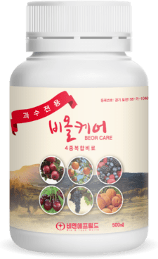 - 과수작물 200평 기준 비올케어 500ml 1병을 사용하며, 영양제와 유기질 비료 사용이 필수입니다.